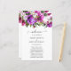 Floral Wedding Programme avec des pivoines dans violet vif et audacieux, fuschia et violet avec le titre et l'en-tête dans un script fantaisiste avec des swashes. Ces élégants tons de bijoux Mariage Programmes dans les tons violets lumineux sont parfaits pour un mariage d'été et sont imprimés sur des feuilles de papier pour une option économique.