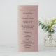 Une belle carte rose de programme de mariage rose or. Ajoutez l'ordre de la cérémonie et vos noms sur le devant. Au fond, il y a de l'espace pour les noms des parties nuptiales.