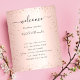 Un programme de mariage moderne et élégant, timeline. Fond de couleur rose gold et blush orné de faux poussière de glitter. Personnalisez et ajoutez vos noms et détails de mariage. Lettres de couleur noire. Si vous avez plus de texte, il est possible de réduire l'espace entre les lignes.