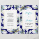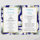 Programme de mariage plié de fleurs tropicales. Ce design moderne floral présente de belles fleurs blanches à feuille d'or et des détails d'aqua bleu marine. Il conviendra parfaitement aux mariages d'été. Pliez-le au centre pour prendre un programme de mariage bi-plié. Choisissez uniquement le type de papier valeur.