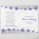 Flacons de neige bleus et blancs modernes et étoiles gris argenté mariage cérémonie pliée et programme de fête avec élégants flocons bleus avec contour blanc et étoiles sur gris ou gris et blanc arrière - plan. Un programme de mariage idéal pour un mariage avec un thème d'hiver ou de Noël en décembre. Pliez-le au milieu. Choisissez uniquement la valeur des types de papier disponibles, car elle se plie bien.