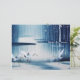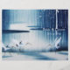 Tableau vintage d'une histoire de neige hivernale avec aurora borealis, un lac, et aigrettes blanches. Les aigrettes représentent la force, la pureté, la patience et la longue vie.