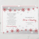 Élégante rangée de flocons de neige rouges et blancs et d'étoiles gris argenté cérémonie de mariage et programme de fête mettant en évidence les flocons de neige en rouge avec contour blanc et étoiles sur arrière - plan gris et blanc. Si vous planifiez un hiver ou un mariage de Noël en décembre, ce design moderne et personnalisable est un choix parfait. Pliez-le le long du centre. Le type de papier de valeur se plie bien, donc choisissez seulement celui des types disponibles.