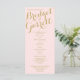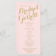 Programme de mariage avec carte à crémaillère couleur rose et or avec texte doré.