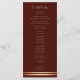 Un élégant programme de mariage riche et moderne avec deux bandes d'or roses au bas de la carte. La cérémonie et les remerciements mariages ont été inclus sur le devant du programme tandis que tous les mariages ont été inclus sur le dos.