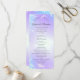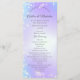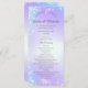 La carte de programme de mariage étincelante violet et bleu étoilé est recto verso avec les détails de la cérémonie sur le devant et les participants à la fête de mariage sur le dos.