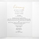 Ce programme classique de mariage triplé d'or eucalyptus est parfait pour compléter un mariage simple. Le design comprend un feuillage d'eucalyptus vert aquarelle avec des feuilles dorés peints à la main.