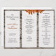 Programme de mariage en bois rustique, écorce d'arbre, feuilles d'automne à plier en trois. Papier à en-tête de qualité avec branches de feuilles rouges et fond en bois. Utilisez des modèles dans trois zones pour personnaliser votre propre programme de cérémonie. Pliez après l'achat.