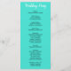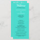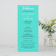 Programmes de mariage arrière - plan bleu turquoise avec texte blanc et noir. Personnalisez les programmes de mariage à l'avant et à l'arrière avec les détails de la cérémonie de la mariée et du marié pour répondre à vos besoins. Cartes de programme conçues pour six demoiselles d'honneur et noms de groomsmen. Si vous avez une petite fête de mariage, il suffit de supprimer les lignes d'extras de demoiselles d'honneur et de groomsmen inutiles, et supprimer l'espacement supplémentaire entre les en-têtes en cliquant sur le bouton Supprimer pour déplacer la ligne vers le haut pour garder l'espacement uniforme. Si vous ajoutez plus de six personnes à chacune d'elles, vous devez cliquer sur Personnaliser pour réduire la taille de la police. Si vous avez besoin d'aide pour modifier davantage, cliquez sur contacter ce concepteur pour obtenir de l'aide sur le placement. Design modèle original par TamiraZDesigns.