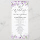 Cet élégant programme de mariage de notre collection Lavender Pressed Floral présente des fleurs d'aquarelle violette avec des vignes vertes délicates, associées à une police de caractères de script moderne. Parfait pour toute saison. Pour effectuer des modifications anticipées, sélectionnez Personnaliser -> Modifier à l'aide de l'outil de conception.