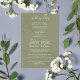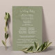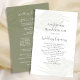 Un modèle de feuille de papier de programme de cérémonie de mariage simple. Ce programme élégant et vert botanique, minimaliste avec une simple écriture calligraphique est parfait pour tout mariage sur la plage, avec des feuilles de palmier élégantes,
