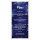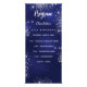Menu fête d'anniversaire et carte programme. Personnalisez et ajoutez un nom, un âge, une date et le menu. Un arrière - plan bleu marine, décoré de parties scintillant faux argentées. La couleur bleue est inégale. Lettres de couleur blanche.