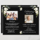 Programme de photos funéraires commémoratives de l'Ordre du service. Souvenir funèbre, célébration de la vie. Ce design est composé de fleurs d'aquarelle blanche, sur un arrière - plan noir. Utilisez l'outil Personnaliser pour ajouter vos informations. Pour les articles correspondants, veuillez visiter ma collection Floral Celebrating of Life Sympathy.