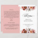 Cet élégant programme de quinceañera présente de magnifiques fleurs et feuillage délicats peints à la main dans un mélange de rose roux, rose poussiéreux, pêche, bordeaux, marron et sauge. Utilisation des détails de calligraphie moderne. Côté gauche dans l'élégante couleur arrière - plan rose vif. Personnalisez le programme dans les deux côtés, en ajoutant tous les détails ou message que vous voulez. Egalement disponible en espagnol. REMARQUE : ce programme arrive à plat et nécessite de plier au milieu pour assembler. Le programme valeur par défaut est recommandé.