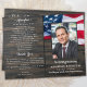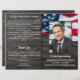 Programme de funérailles mémorial du drapeau américain des États-Unis / Programme de célébration de la vie. Ce programme de célébration de la vie patriotique présente un drapeau des États-Unis d'Amérique sur un fond en bois sombre. Personnalisez ce programme de funérailles de célébration du drapeau américain avec la photo, le nom et les dates de votre proche, le lieu de l'événement, la nécrologie, l'ordre du service et l'accusé de réception de remerciement. Ce programme de funérailles photo du drapeau américain sera un souvenir précieux. Parfait pour des funérailles militaires, un service mémorial de vétéran ou une célébration militaire de la vie. En souvenir affectueux Mémorial militaire Drapeau américain. COPYRIGHT © 2020 Judy Burrows, Black Dog Art - Tous droits réservés. Programme de service mémorial de vétéran patriotique à petit budget.