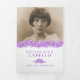 Programme funéraire ordre de service gatefold floral forget-me-not flowers programme funéraire d'art en blanc, violet, avec des touches de jaune et vert sur le papier blanc. Il vous suffit de remplacer l'exemple de texte et les supports photo par vos propres photos et informations spéciales. Dessin original encré et aquarelle d'illustration et design par Sarah Trett pour www.mylittleeden.com (les photos ne sont que des images d'espace réservé à remplacer par les vôtres).