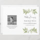 Ce design comprend un programme mariage de fleurs vertes, un modèle de cérémonie de commande de service, un script de calligraphie tendance, un programme de mariage élégant, un motif de feuilles feuilles botaniques vertes, un design minimaliste simple, une feuille verte d'eucalyptus, un botanique naturel de terre, un programme d'église mariage simple, un programme de service de détails mariages
