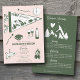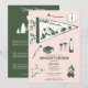 Un design mignon dessiné à la main avec des illustrations sur le thème du camping pour enterrement de vie de jeune fille. Ce design de week-end de camping vert et rose est idéal pour les week-ends de camping luxe pour l'enterrement de vie de jeune fille, les fêtes d'enterrement de vie de jeune fille en camping dans des destinations de montagne, de forêt ou de lac.