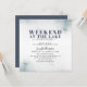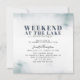 Profitez d'un week-end d'enterrement de vie de jeune fille exceptionnel au lac avec cette invitation à l'aquarelle rustique et tendance, avec le titre en grandes lettres grasses et en calligraphie manuscrite, le design est terminé au verso avec un fond bleu marine fumé avec le programme des événements du week-end. Personnalisez avec vos informations en utilisant les champs de modèle fournis.
