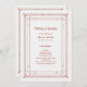 Ces programmes de mariage séduisants présentent une touche moderne d'art déco classique. Un cadre géométrique rouge et festif orné et décoré décorent un élégant arrière - plan blanc/argent très léger pour un look mariage des années 1920 dramatique, glamour et vintage, parfait pour votre mariage de Noël.