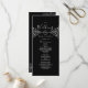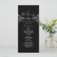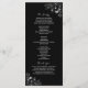 Élégant, moderne, noir et blanc programme de mariage avec coeur de corde argentée et dentelle vintage dorée fleurie.
