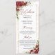 Le design tendance pour le programme de mariage comprend des aquarelles bordeaux et des fleurs roses rousses mélangeant des feuilles d'eucalyptus fraîches, des éclats d'or mélangés et un élégant tissé dans un cadre doré. N'hésitez pas à me contacter pour les articles correspondants ou la personnalisation. Roses blush ©