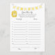 Un jeu amusant pour le baby shower est le Guess leur âge jeu. Ce jeu comporte une bannière jaune en haut et un tonneau de miel. Au verso, un ours en peluche s'appuie sur un tonneau de miel en regardant une abeille au miel avec des modèles.