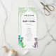 Drôle programme de jour de mariage à thème dinosaure avec fiancée de dinosaure coloré, marié et aquarelle feuillage eucalyptus. Facile à customiser avec les noms des mariés et mariés, la date du mariage et tous les détails de la cérémonie de mariage dans le script de typographie moderne. Fun Tyrannosaurus Rex marié et groom dino illustrations dans les tons rose violet bleu et jaune avec l'aquarelle botanique verte dans les tons verts. Dino original unique oeuvre de l'artiste Catherine Sweetman