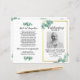 [Tout le texte est MODIFIABLE] Programme funéraire pliable à double face abordable avec une photo à l'avant et 2 photos à l'intérieur. Thème : Feuilles d'Eucalyptus verdoyants. Style : Élégant et calme. Genre : Unisex. Couleurs : Vert, Blanc, Faux Or. Graphiques : Aquarelle dessinée à la main des feuilles d'eucalyptus, cadres faux or.