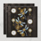 Cadres et clés d'antiquité avec des engrenages d'or et de laiton, décorés de libellules mécaniques, steampunk sur arrière - plan brun rayé.