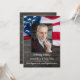 USA American Flag Memorial Funeral Program / Celebration Of Life Program. Ce programme de célébration patriotique de la vie comporte un drapeau des États-Unis d'Amérique sur un arrière - plan en bois foncé. Personnalisez cette fête du drapeau américain de la vie funéraire programme avec vos proches photo, nom & dates, lieu de l'événement, et ordre de service sur le dos. Ce programme funéraire photo American Flag sera un souvenir précieux. Parfait pour les funérailles militaires, le service commémoratif vétéran ou la célébration militaire de la vie. In Loving Memory Military Memorial drapeau américain. DROIT D'AUTEUR © 2020 Judy Burrows, Black Dog Art - Tous droits réservés. Programme Drapeau De L'Ordre De Service Funéraire Patriotique