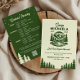Invitation pour un week-end de célibat en camping avec itinéraire au verso est une invitation amusante et en plein air conçue pour les retraites en cabane, le camping de luxe en montagne, les escapades au lac ou les aventures dans les parcs nationaux. Le devant présente une illustration de badge de camping rétro avec des montagnes, des pins et une rivière en vert forêt sur un crème chaud, avec des lignes modifiables pour le nom de camp de la future mariée, l'année de création, les dates du week-end, le lieu et le slogan ludique « Dernière piste avant le voile ». Le verso fournit un itinéraire de week-end prêt à personnaliser qui organise les plans du vendredi au dimanche dans un calendrier clair, ainsi qu'un espace flexible pour les notes de frais, les détails de paiement ou de contact, et un code QR scannable qui peut être lié à Venmo ou Cash App, aux listes de cadeaux, aux informations de logement ou à tout lien de site web. Conçu dans un style de camping moderne-vintage, cette invitation convient aux retraites en pleine nature à l'ambiance décontractée et aux week-ends d'aventure à haute énergie, et se coordonne facilement avec la signalisation, les faveurs et la décoration assorties. Utilisez-le pour définir le ton d'un week-end de randonnée, de kayak, de camping, de visites de vignobles ou de journées en bateau, et pour garder les invités sur la même page avant le voyage. La typographie claire rend les détails clés faciles à lire, tandis que la palette verte cohérente