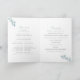 Élégant programme de mariage avec police script avec des feuilles d'eucalyptus aquarelle en bleu et vert poussiéreux. Personnalisez tout le texte pour vos besoins.