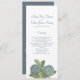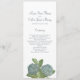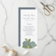 Bouquet floral d'hydrangée bleu Dusty dans un beau programme de cérémonie Mariage. Un simple design de fleurs bleues avec un beau script botanique.