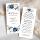 Carte de programme de mariage floral bleu Dusty avec l'élégant bouquet de bleu marine, bleu royal, blanc, or, ivoire de champagne, rose couleur rousse, bourgeons de fleurs ranunculus et sauge vert eucalyptus feuilles et élégant bouquet d'aquarelle. Veuillez me contacter pour toute aide sur la personnalisation ou si vous avez besoin d'un autre produit avec ce design.
