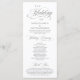 Élégant script gris foncé Classy, programme de cérémonie Mariage en carte de 4 x 9 pouces (long). Il est conçu avec un accent de défilement qui peut être personnalisé avec du texte personnalisé/personnalisé pour votre fête de mariage, les détails de cérémonie, des notes commémoratives et un message de remerciement. Si vous cherchez d'autres types et tailles de cartes de programme, veuillez consulter notre section de collecte de cartes de programme correspondant.