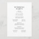 This elegant wedding program features a clean, symmetrical layout with ample white space that enhances its sophisticated and formal appearance. The design utilizes a classic black text on a crisp white background, creating a timeless look complemented by subtle leafy branch illustrations at the corners. Typography plays a key role, with bold serif fonts highlighting important details and smaller italicized fonts for ceremony elements, ensuring clarity and elegance. Perfect for traditional weddings, this program conveys an atmosphere of refinement and celebration.