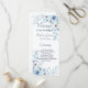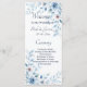 Guide your guests through your ceremony with this elegant blue floral wedding program. Featuring soft watercolor blue flowers and delicate greenery accents, this program perfectly coordinates with your wedding suite. Designed with clarity and style in mind, it includes space for your order of events, wedding party details, and special notes. A sophisticated keepsake that adds a cohesive, polished touch to your wedding day. Fully customizable with your names, wedding date, and ceremony details.