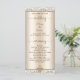 Cet élégant programme de mariage au champagne présente un arrière - plan de champagne métallique, avec une bordure en damas en faux parties scintillant en haut et en bas, décoré d'une fleur de lis.