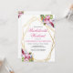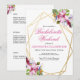 Des fleurs tropicales aquarelles rose pâle et violet clair à l'intérieur d'un double cadre géométrique doré présentent des éléments botaniques et festifs. Personnalisez cette invitation de week-end de bachelorette avec vos propres couleurs et polices ou gardez cette typographie populaire telle quelle pour votre commodité. Mélangez et assortissez avec d'autres articles de cette belle collection de mariage.