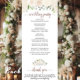 Ce magnifique programme de mariage présente un élégant design boho chic floral avec des roses peints à la main dans les tons champagne, blush, ou pêche très pâle sur un arrière - plan blanc. Les titres sont écrits en calligraphie de script sophistiquée, et il y a de l'espace pour vos détails de cérémonie et de mariage, ainsi qu'un bref merci pour votre invité. Merveilleuse façon d'accueillir vos amis et votre famille à votre fête mariage.