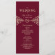 Célébrez votre mariage dans un style intemporel avec cet élégant programme de fleurs bordeaux et dorées. Doté de fleurs sauvages dorés romantiques et de calligraphie moderne, il est le point de départ idéal pour une cérémonie d'automne ou d'hiver. Personnalisez les deux côtés avec les détails de votre cérémonie, la fête de mariage, et note de remerciement. Besoin d'aide pour customiser ? Courriel : bpkolman@gmail.com