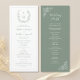 Ces programmes de cérémonie mariage présentent un design botanique élégant avec monogramme et typographie de script moderne dans une couleur verte sage. Personnalisez avec votre texte. Des articles de papeterie correspondants sont également disponibles.