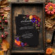 Découvrez la beauté opulente d'une récolte florale d'automne avec notre programme de mariage captivant. Un arrière - plan noir, à la fois élégant et doux, est la toile parfaite pour un bouquet à la fois réaliste et à couper le souffle. Imaginez une explosion de couleurs vibrantes, avec des roses en magenta orange et foncé, avec de petites fleurs rose magenta et des violettes violettes violettes et à côté des mamans de pêche et d'autres floraux vibrants. Le feuillage vert foncé et luxuriant vient compléter l'aménagement, ajoutant une touche d'élégance naturelle. Ce design captivant est parfait pour toute saison, reflétant l'intensité passionnée de votre histoire d'amour. Ce design enchanteur crée une invitation inoubliable à célébrer votre journée spéciale. Créé par Simply Farmhouse Press.