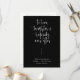 Cet élégant programme de mariage à plat comprend une calligraphie élégante et une police de typographie sans serif simple sur un arrière - plan noir pour un look épuré minimaliste et moderne, ce qui est une belle façon d'informer vos invités de l'ordre de votre cérémonie de mariage et donner à vos invités une faveur de mariage. La simplicité de ce design ajoute une touche d'élégance à votre mariage. Il fonctionne bien avec de nombreux thèmes mariages et certainement un grand ajout à votre papeterie mariage. Il suffit de customiser les noms et le libellé en quelques étapes simples et personnaliser le programme pour lui donner une touche personnelle agréable. Veuillez noter : La calligraphie élégante de la formulation "à aimer, rire et heureux toujours après" ainsi que les lignes et d'autres illustrations graphiques et éléments ne peuvent pas être modifiés, supprimés, ou déplacés. Elles sont réparées.