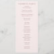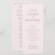 This wedding program features a minimalist and modern design with a soft pink background, creating an elegant and inviting atmosphere. The layout is clean and structured, utilizing ample negative space to highlight the hierarchy of text in muted pinks and deep maroons. Typography plays a key role, with serif fonts adding sophistication and cursive for a romantic touch, while customizable placeholders allow personalization for names, dates, and locations. Ideal for couples seeking a stylish yet straightforward program that emphasizes clarity and formality.