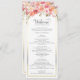 Cet élégant programme de mariage comprend un bouquet floral couleur aquarelle en rose et pêche avec un cadre doré. inclure le nom de la mariée et du marié, la date et l'emplacement du mariage, l'ordre de cérémonie et la fête de mariage.