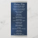 Ce design romantique présente un élégant arrière - plan bleu avec des bordures de ruban, détails de la cérémonie du mariage & merci sur le devant avec les membres de la fête de mariage sur le dos. Disponible en plusieurs couleurs pour votre thème mariage. (Le ruban est simulé dans l'illustration). Disponible en plusieurs couleurs pour vos couleurs de thème mariage. (Le ruban est simulé dans l'illustration). Conçu pour coordonner avec la collection Mariage "Two Shall Become One - Silver & Gold". Pour modifier les détails, cliquez sur "Personnaliser". Pour déplacer le texte ou modifier la taille, la police ou la couleur du texte, cliquez sur "Cliquez pour customiser plus loin"