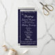 Ce design romantique présente un élégant arrière - plan bleu marine avec des bordures de ruban, détails de la cérémonie de mariage & merci sur le devant avec les membres de la fête de mariage sur le dos. Disponible en plusieurs couleurs pour votre thème mariage. (Le ruban est simulé dans l'illustration). Disponible en plusieurs couleurs pour vos couleurs de thème mariage. (Le ruban est simulé dans l'illustration). Conçu pour coordonner avec la collection Mariage "Two Shall Become One - Silver & Gold". Pour modifier les détails, cliquez sur "Personnaliser". Pour déplacer le texte ou modifier la taille, la police ou la couleur du texte, cliquez sur "Cliquez pour customiser plus loin"
