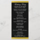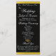 Ce design romantique présente un élégant arrière - plan noir avec des bordures de ruban, détails de la cérémonie du mariage & merci sur le devant avec les membres de la fête de mariage sur le dos. Disponible en plusieurs couleurs pour votre thème mariage. (Le ruban est simulé dans l'illustration). Conçu pour coordonner avec la collection Mariage "Two Shall Become One - Silver & Gold". Pour modifier les détails, cliquez sur "Personnaliser". Pour déplacer le texte ou modifier la taille, la police ou la couleur du texte, cliquez sur "Cliquez pour customiser plus loin"